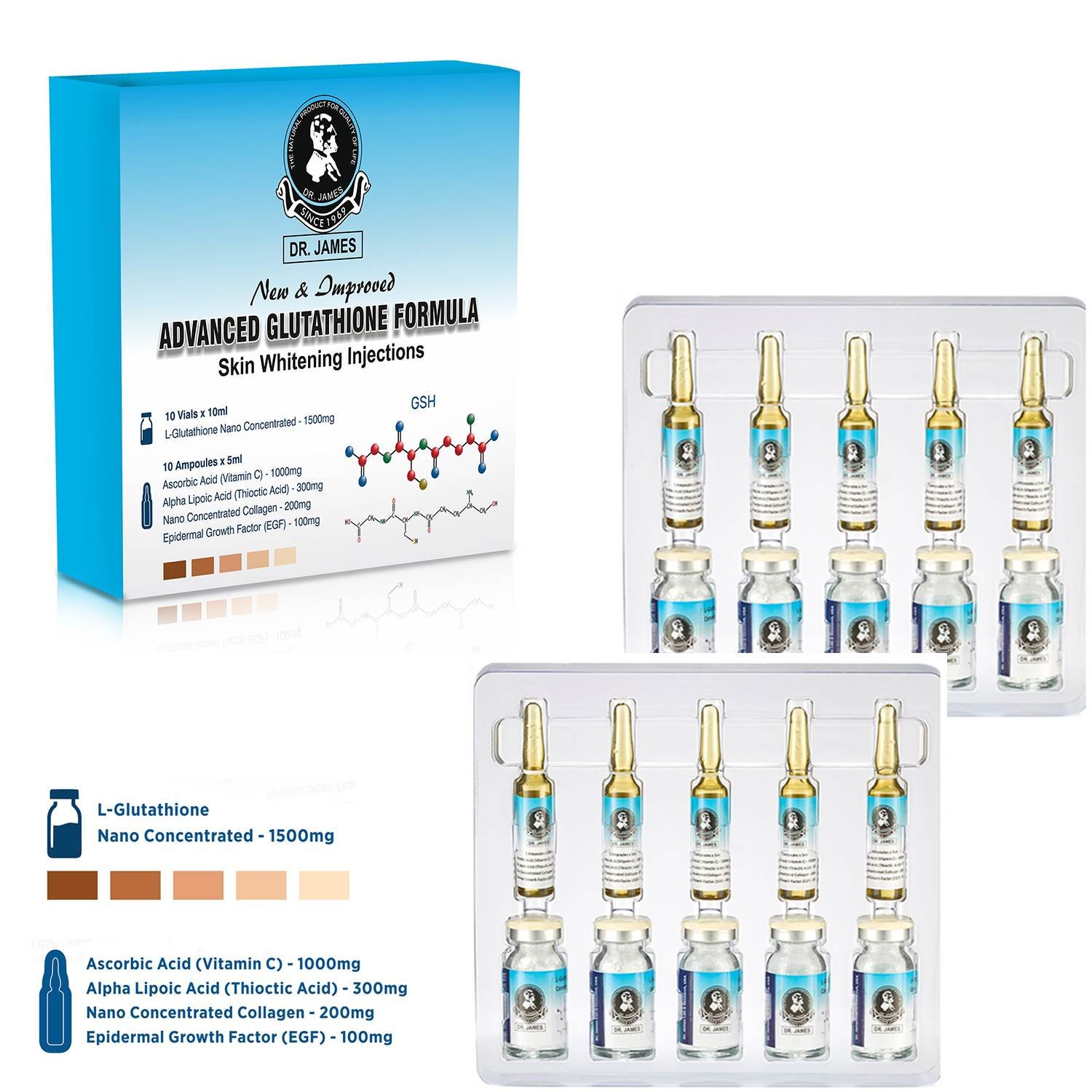 Buy Dr James Glutathione 1500mg Skin Whitening Injections are currently dominating the beauty market with an exclusive package of excellent strength skin whitening formula and just a smidgeon of Glutathione. These reduced Glutathione injections are subjected to repeated lab tests and improvisation to ensure the highest level of customer safety while producing the best results. Glutathione has been scientifically proven to be an excellent agent for effectively introducing skin whitening effects on the user. .