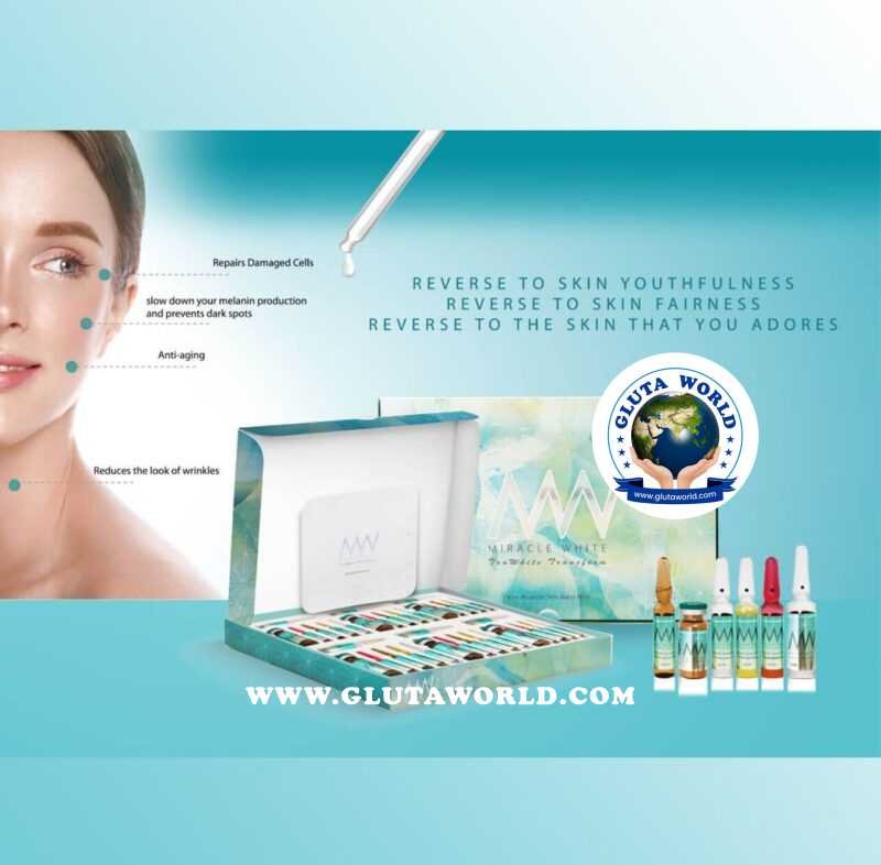 On the Glutaworld website, you can purchase Miracle White Green Tru White Transform Glutathione 25000Mg, the most powerful whitening product available. We use natural substances that are suitable for all skin types. It will assist you in achieving smooth, fresh, clean, and healthy skin that is more radiant and has even skin tone and texture.