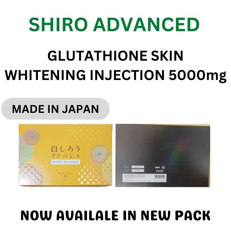 - Shiro Advanced Glutathione 5000mg Whitening Injection works as an anti-aging product by reducing the fine lines and hides the signs of aging.